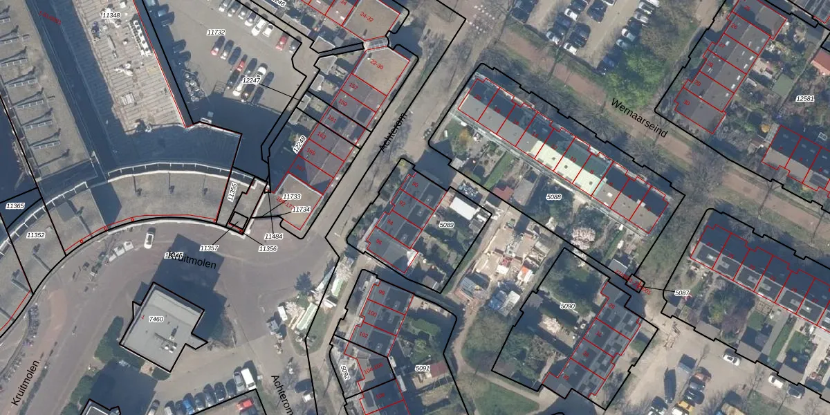 Het perceel waarop Achterom 92 staat heeft een oppervlakte van 618 m². Dit is een groot perceel. De perceeloppervlakte wordt geregistreerd door het Kadaster. Gedetailleerde informatie over de maten van dit perceel kunt u vinden in het rapport Kadastrale kaart met maatvoering van Achterom 92.