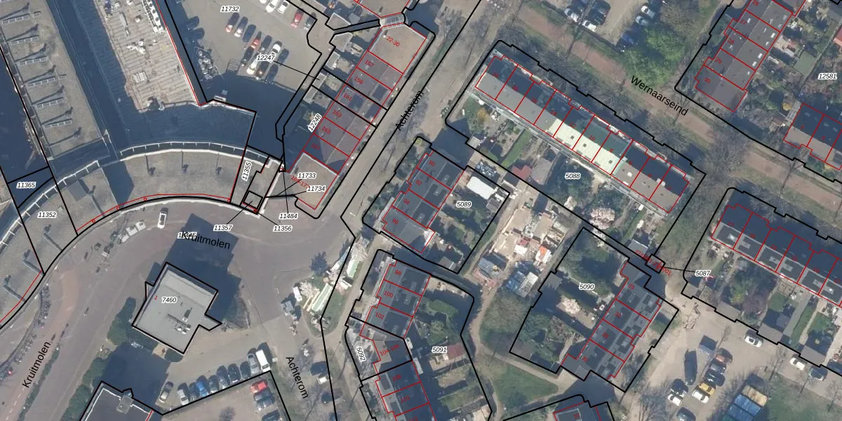 Het perceel waarop Achterom 94 staat heeft een oppervlakte van 618 m². Dit is een groot perceel. De perceeloppervlakte wordt geregistreerd door het Kadaster. Gedetailleerde informatie over de maten van dit perceel kunt u vinden in het rapport Kadastrale kaart met maatvoering van Achterom 94.