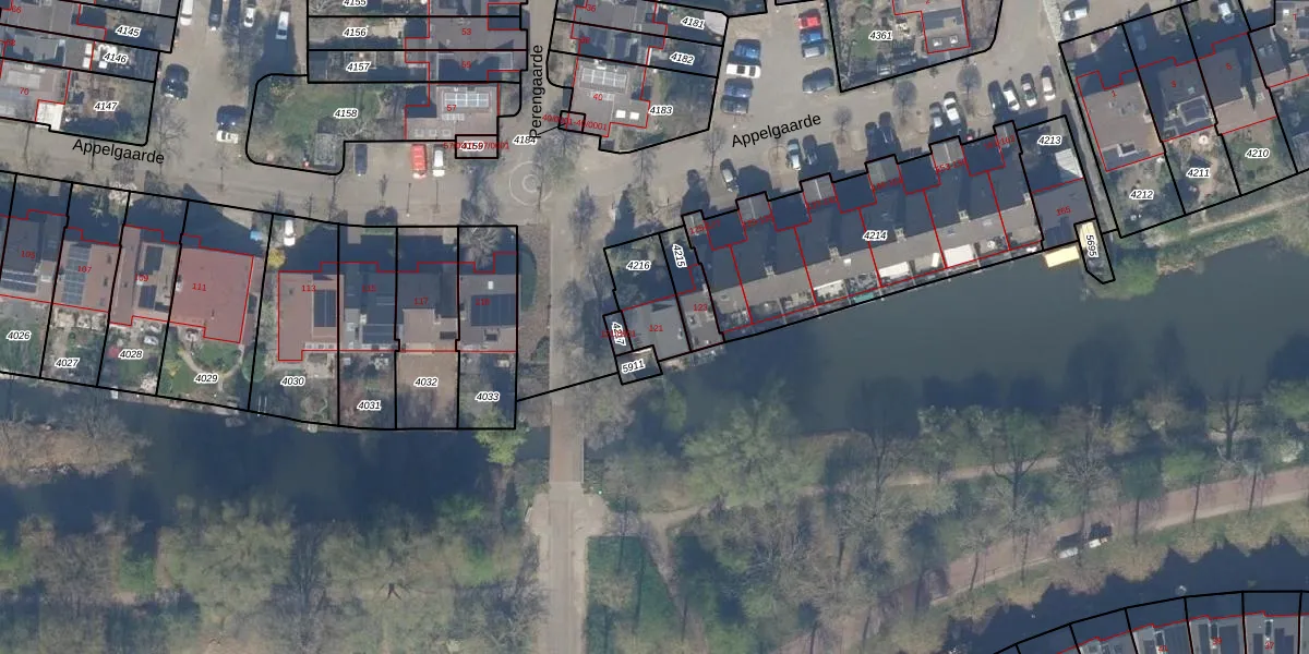 Appelgaarde 121 is gelegen op kadastraal perceel HTN04A4216. Deze kadastrale aanduiding is uniek en wordt gebruikt door het Kadaster om eigendomsrechten en andere zakelijke rechten vast te leggen. Het perceel maakt onderdeel uit van de kadastrale gemeente Houten.