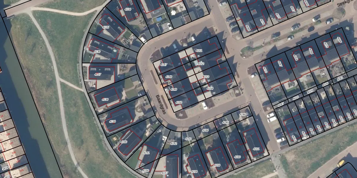Het perceel waarop Baardgras 13 staat heeft een oppervlakte van 145 m². Dit is een middelgroot perceel. De perceeloppervlakte wordt geregistreerd door het Kadaster. Gedetailleerde informatie over de maten van dit perceel kunt u vinden in het rapport Kadastrale kaart met maatvoering van Baardgras 13.