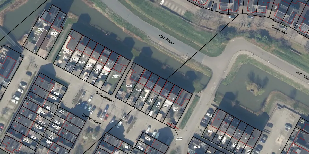 Gebruik de zoekbalk of klik op een perceel voor informatie over de adressen binnen dit perceel.