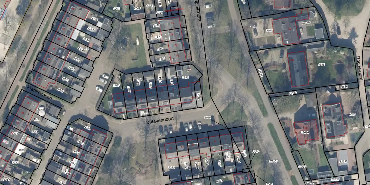 Het perceel waarop Batavenpoort 1 staat heeft een oppervlakte van 237 m². Dit is een middelgroot perceel. De perceeloppervlakte wordt geregistreerd door het Kadaster. Gedetailleerde informatie over de maten van dit perceel kunt u vinden in het rapport Kadastrale kaart met maatvoering van Batavenpoort 1.