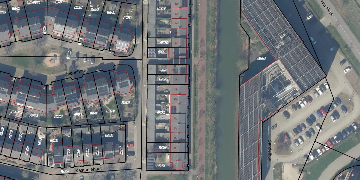 Het perceel waarop het adres ligt is HTN04-A-10806. De afkorting 'HTN04' staat voor kadastrale gemeente Houten. Het perceel is kleiner dan gemiddeld in Houten. Het perceel is 756 m² groot, terwijl het gemiddelde ligt op 2869,64 m². De grootste perceeloppervlakte in de kadastrale gemeente is 45,3 ha. De kleinste oppervlakte bedraagt 0 m². Op het perceel zijn 6 adressen aanwezig. De laatste wijziging in het de Basisregistratie Kadaster (BRK) was op 06-03-2012.