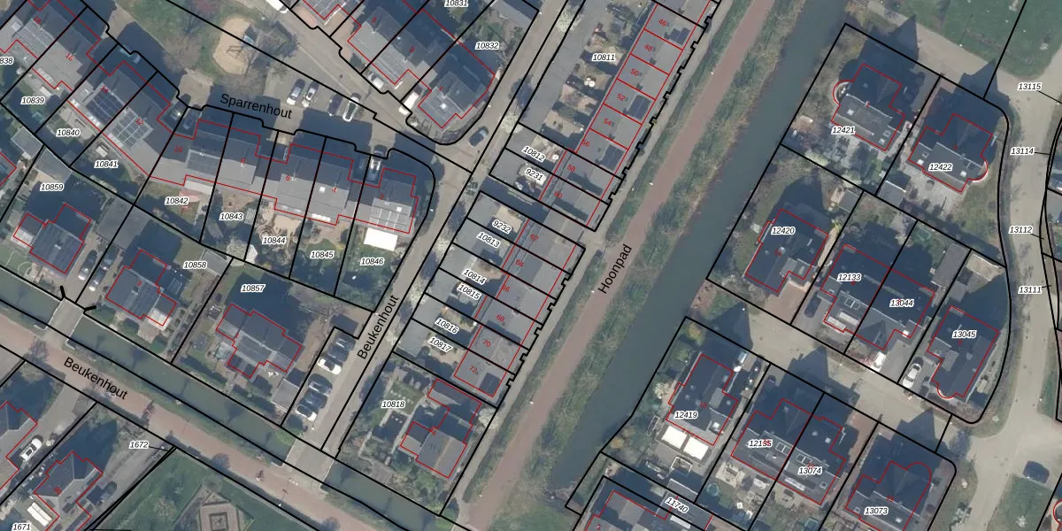 Het perceel waarop Beukenhout 64 staat heeft een oppervlakte van 121 m². Dit is een middelgroot perceel. De perceeloppervlakte wordt geregistreerd door het Kadaster. Gedetailleerde informatie over de maten van dit perceel kunt u vinden in het rapport Kadastrale kaart met maatvoering van Beukenhout 64.