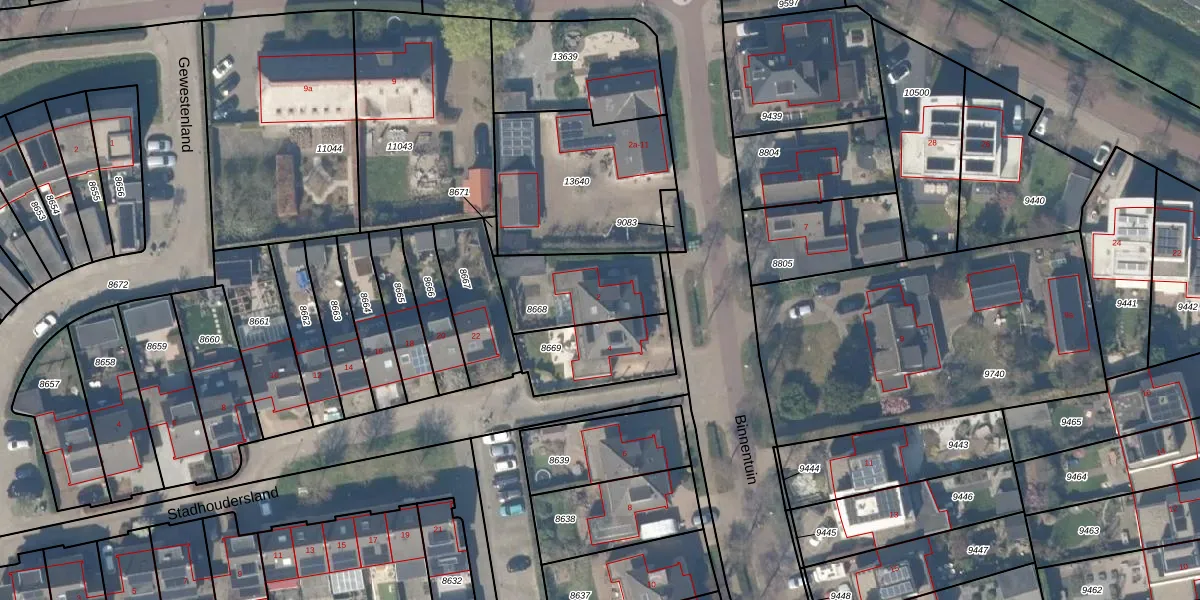 Het perceel waarop Binnentuin 2 staat heeft een oppervlakte van 316 m². Dit is een groot perceel. De perceeloppervlakte wordt geregistreerd door het Kadaster. Gedetailleerde informatie over de maten van dit perceel kunt u vinden in het rapport Kadastrale kaart met maatvoering van Binnentuin 2.