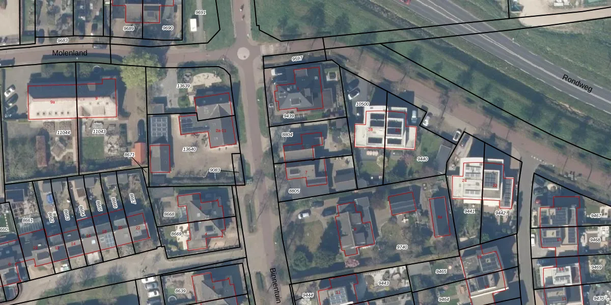 Het perceel waarop Binnentuin 5 staat heeft een oppervlakte van 320 m². Dit is een groot perceel. De perceeloppervlakte wordt geregistreerd door het Kadaster. Gedetailleerde informatie over de maten van dit perceel kunt u vinden in het rapport Kadastrale kaart met maatvoering van Binnentuin 5.