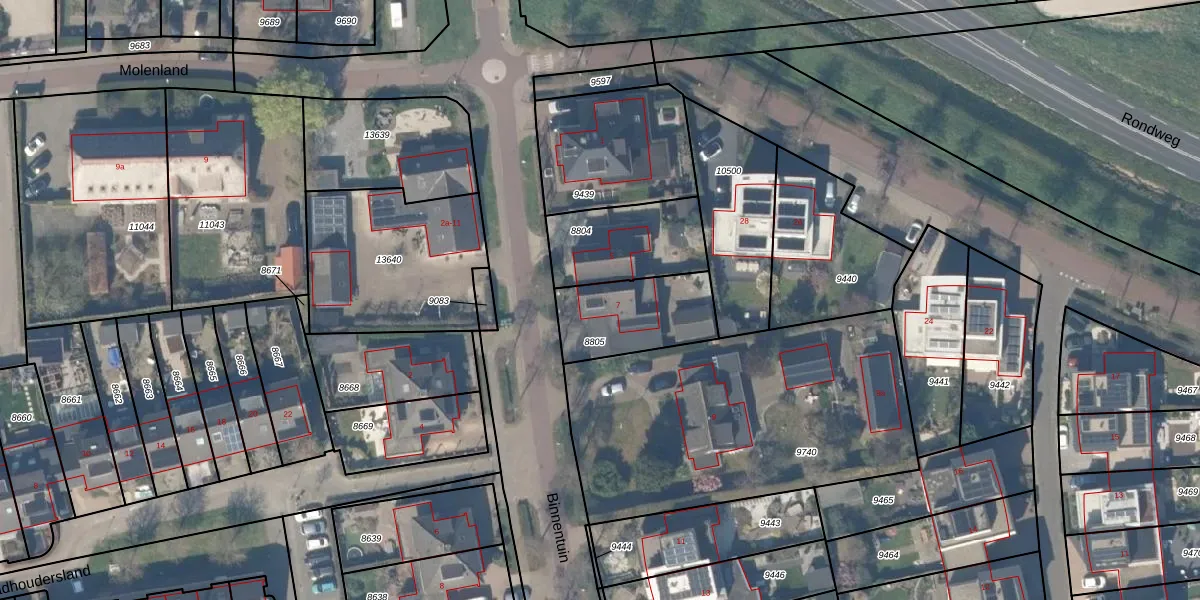 Het perceel waarop Binnentuin 7 staat heeft een oppervlakte van 320 m². Dit is een groot perceel. De perceeloppervlakte wordt geregistreerd door het Kadaster. Gedetailleerde informatie over de maten van dit perceel kunt u vinden in het rapport Kadastrale kaart met maatvoering van Binnentuin 7.