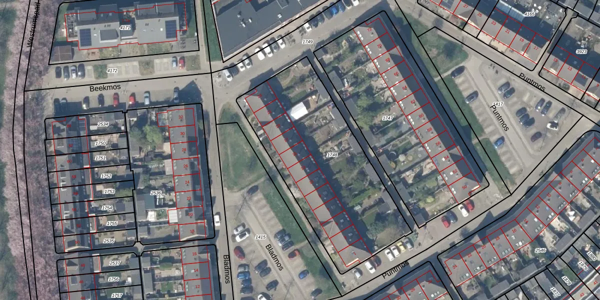 Het perceel waarop Bladmos 15 staat heeft een oppervlakte van 1893 m². Dit is een zeer groot perceel. De perceeloppervlakte wordt geregistreerd door het Kadaster. Gedetailleerde informatie over de maten van dit perceel kunt u vinden in het rapport Kadastrale kaart met maatvoering van Bladmos 15.
