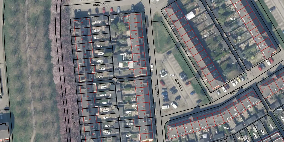 Bladmos 18 is gelegen op kadastraal perceel HTN04B2536. Deze kadastrale aanduiding is uniek en wordt gebruikt door het Kadaster om eigendomsrechten en andere zakelijke rechten vast te leggen. Het perceel maakt onderdeel uit van de kadastrale gemeente Houten.