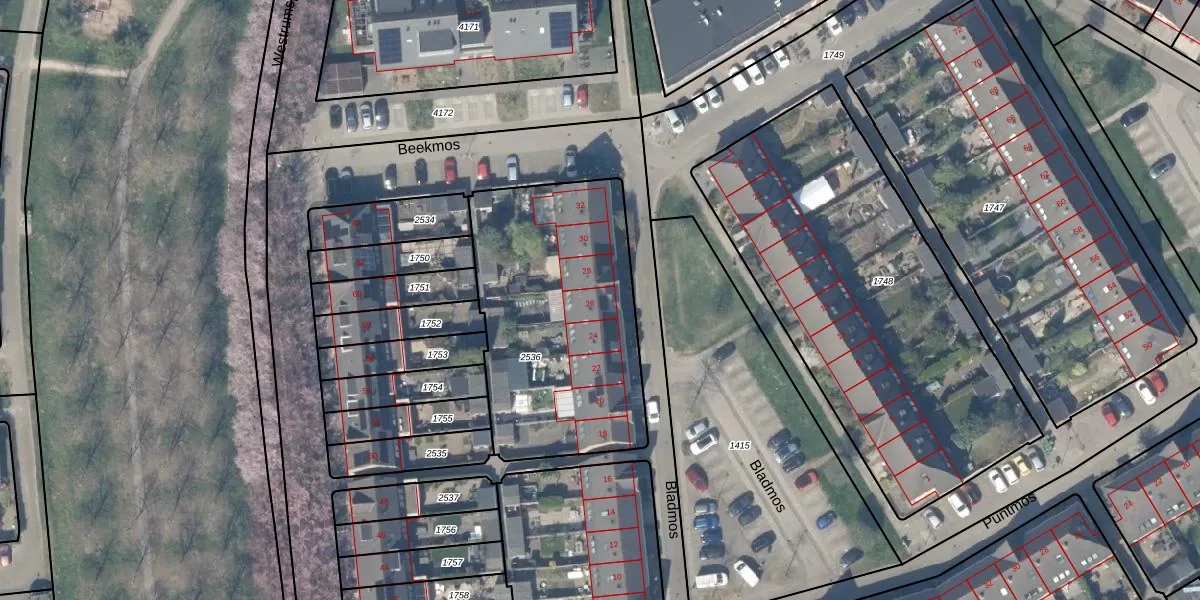 Bladmos 26 is gelegen op kadastraal perceel HTN04B2536. Deze kadastrale aanduiding is uniek en wordt gebruikt door het Kadaster om eigendomsrechten en andere zakelijke rechten vast te leggen. Het perceel maakt onderdeel uit van de kadastrale gemeente Houten.
