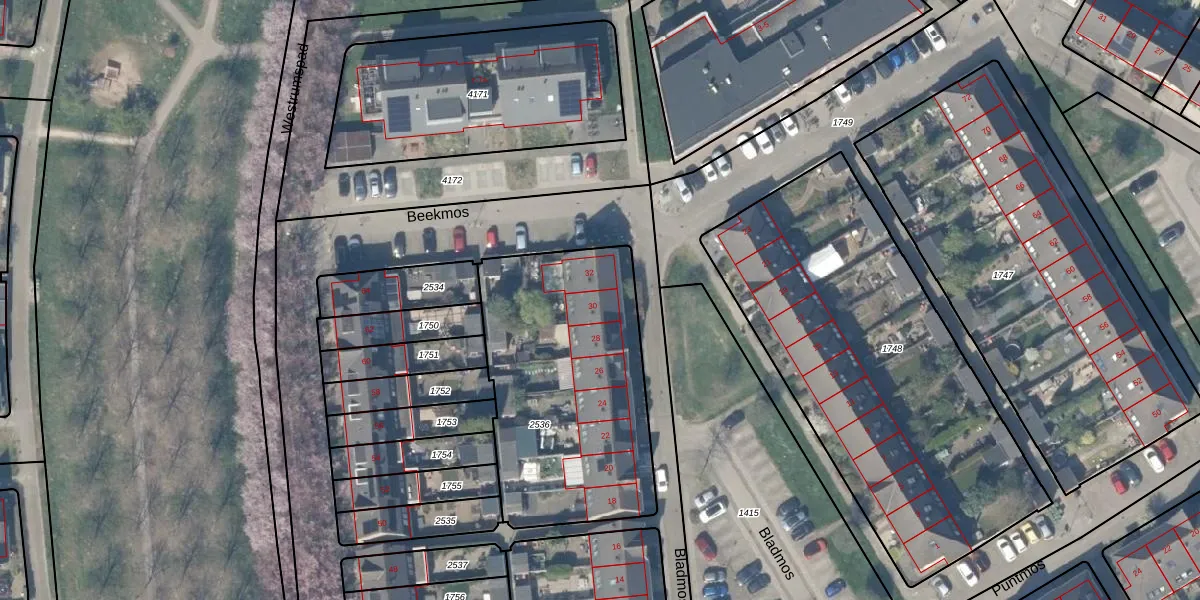 Het perceel waarop Bladmos 30 staat heeft een oppervlakte van 1158 m². Dit is een zeer groot perceel. De perceeloppervlakte wordt geregistreerd door het Kadaster. Gedetailleerde informatie over de maten van dit perceel kunt u vinden in het rapport Kadastrale kaart met maatvoering van Bladmos 30.