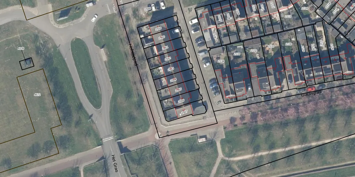 Blauwgras 13 is gelegen op kadastraal perceel HTN04B2565. Deze kadastrale aanduiding is uniek en wordt gebruikt door het Kadaster om eigendomsrechten en andere zakelijke rechten vast te leggen. Het perceel maakt onderdeel uit van de kadastrale gemeente Houten.