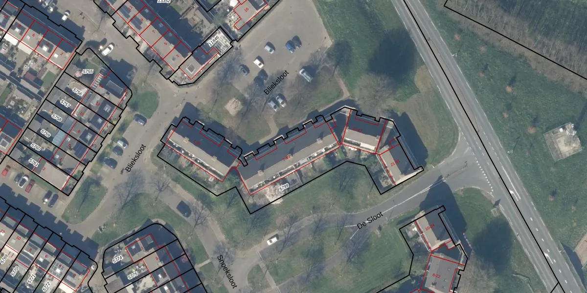 Het perceel waarop Blieksloot 39 staat heeft een oppervlakte van 1572 m². Dit is een zeer groot perceel. De perceeloppervlakte wordt geregistreerd door het Kadaster. Gedetailleerde informatie over de maten van dit perceel kunt u vinden in het rapport Kadastrale kaart met maatvoering van Blieksloot 39.