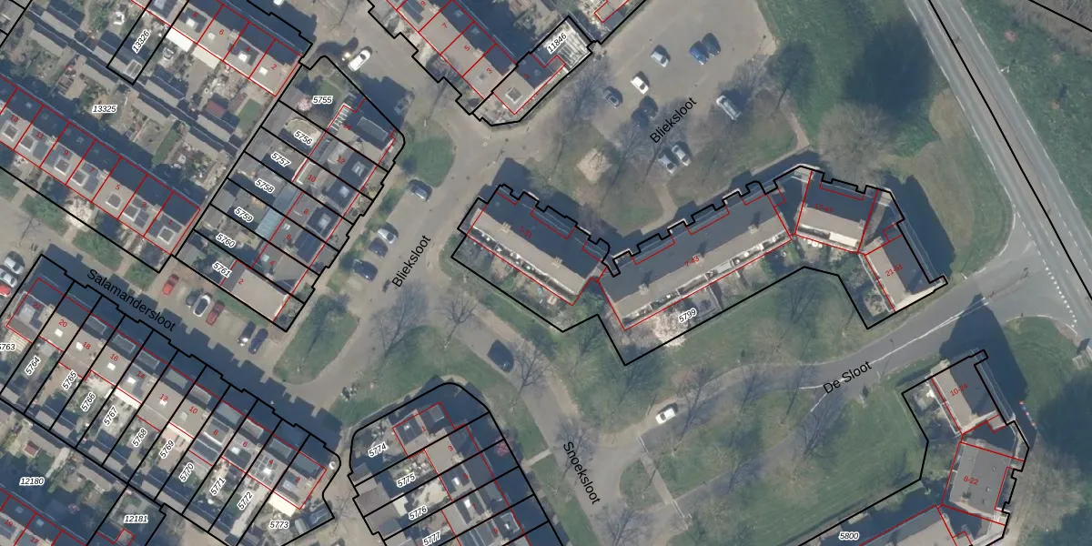 Blieksloot 5 is gelegen op kadastraal perceel HTN04A5799. Deze kadastrale aanduiding is uniek en wordt gebruikt door het Kadaster om eigendomsrechten en andere zakelijke rechten vast te leggen. Het perceel maakt onderdeel uit van de kadastrale gemeente Houten.