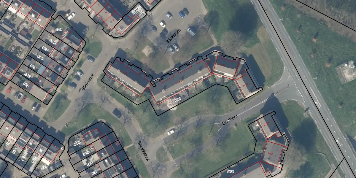 Het perceel waarop Blieksloot 9 staat heeft een oppervlakte van 1572 m². Dit is een zeer groot perceel. De perceeloppervlakte wordt geregistreerd door het Kadaster. Gedetailleerde informatie over de maten van dit perceel kunt u vinden in het rapport Kadastrale kaart met maatvoering van Blieksloot 9.