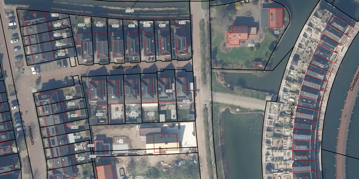 Gebruik de zoekbalk of klik op een perceel voor informatie over de adressen binnen dit perceel.