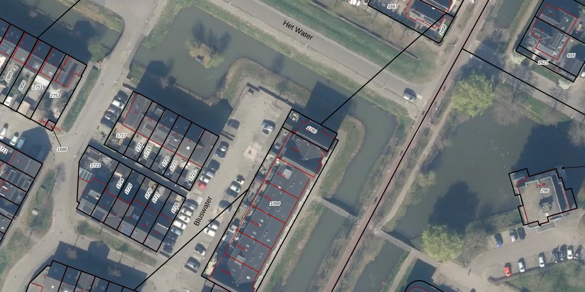 Het perceel waarop Bluswater 20 staat heeft een oppervlakte van 1114 m². Dit is een zeer groot perceel. De perceeloppervlakte wordt geregistreerd door het Kadaster. Gedetailleerde informatie over de maten van dit perceel kunt u vinden in het rapport Kadastrale kaart met maatvoering van Bluswater 20.