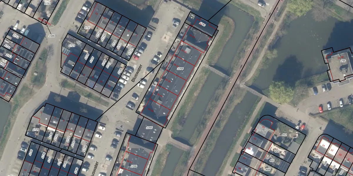 Het perceel waarop Bluswater 36 staat heeft een oppervlakte van 1114 m². Dit is een zeer groot perceel. De perceeloppervlakte wordt geregistreerd door het Kadaster. Gedetailleerde informatie over de maten van dit perceel kunt u vinden in het rapport Kadastrale kaart met maatvoering van Bluswater 36.