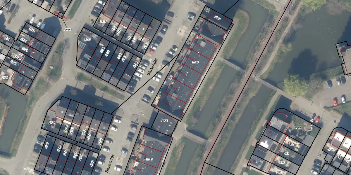 Het perceel waarop Bluswater 44 staat heeft een oppervlakte van 1114 m². Dit is een zeer groot perceel. De perceeloppervlakte wordt geregistreerd door het Kadaster. Gedetailleerde informatie over de maten van dit perceel kunt u vinden in het rapport Kadastrale kaart met maatvoering van Bluswater 44.