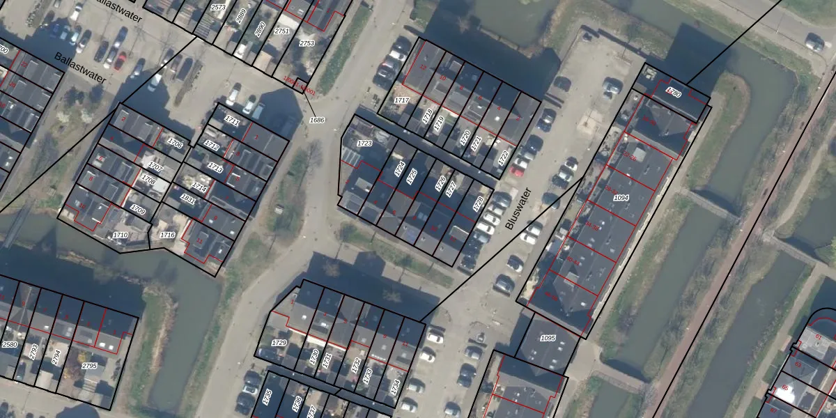 Het perceel waarop Bluswater 8 staat heeft een oppervlakte van 107 m². Dit is een middelgroot perceel. De perceeloppervlakte wordt geregistreerd door het Kadaster. Gedetailleerde informatie over de maten van dit perceel kunt u vinden in het rapport Kadastrale kaart met maatvoering van Bluswater 8.