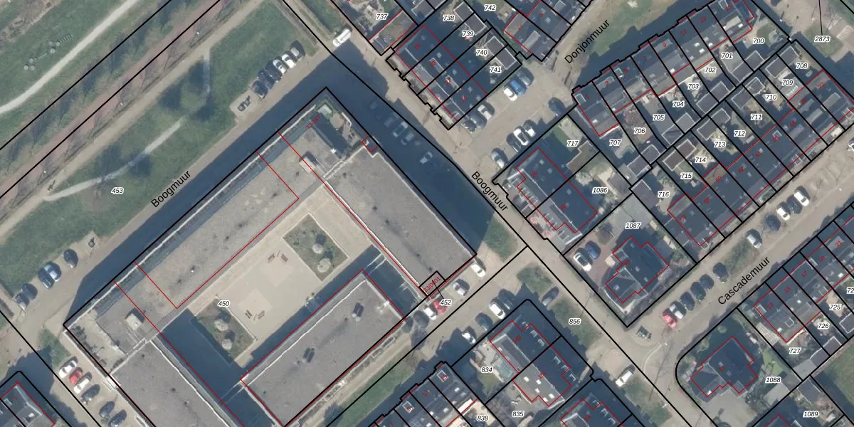 Boogmuur 37 is gelegen op kadastraal perceel HTN04H450. Deze kadastrale aanduiding is uniek en wordt gebruikt door het Kadaster om eigendomsrechten en andere zakelijke rechten vast te leggen. Het perceel maakt onderdeel uit van de kadastrale gemeente Houten.