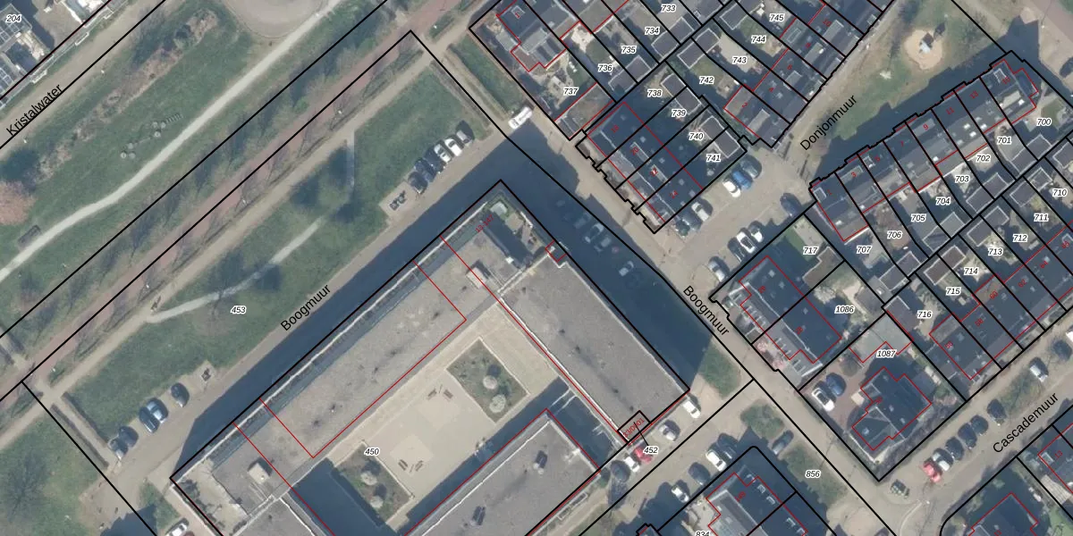 Boogmuur 83 is gelegen op kadastraal perceel HTN04H450. Deze kadastrale aanduiding is uniek en wordt gebruikt door het Kadaster om eigendomsrechten en andere zakelijke rechten vast te leggen. Het perceel maakt onderdeel uit van de kadastrale gemeente Houten.