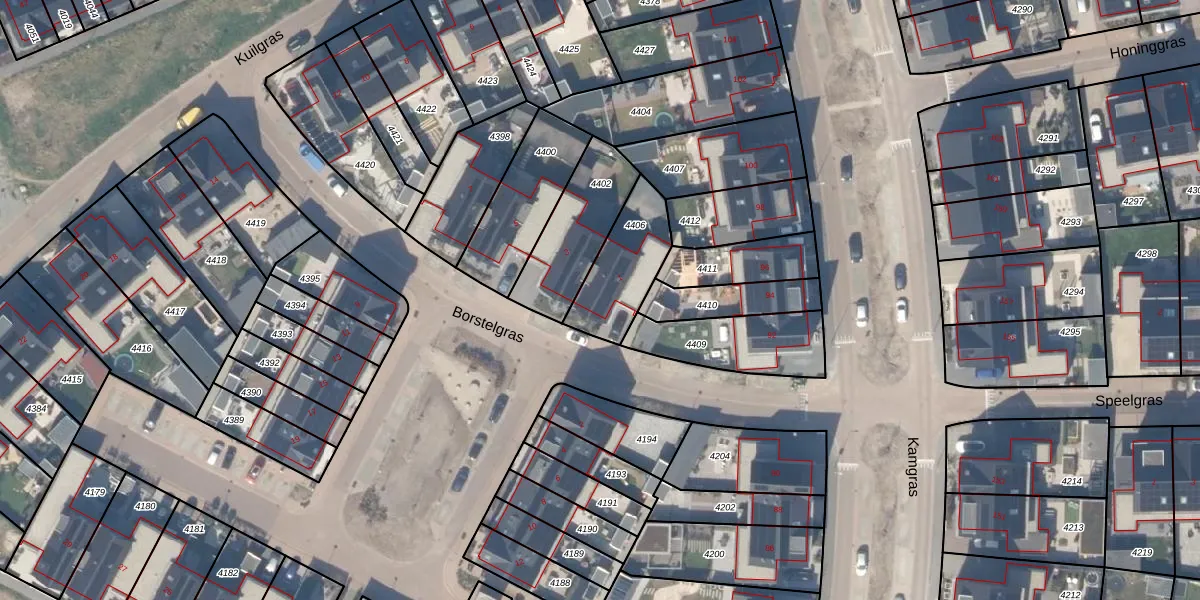 Het adres is gelegen op perceel 4406 in de sectie B en de kadastrale gemeente Houten. De kadastrale aanduiding is aldus HTN04-B-4406. Het perceel is 255 m² groot. Dat is kleiner dan de gemiddelde perceeloppervlakte in Houten, dat op 2872,3 m² ligt. Het grootste perceel in de kadastrale gemeente is 45,3 ha. Het kleinste perceel heeft een oppervlakte van 0 m². Er zijn geen andere adressen aanwezig op het perceel. De huidige grenzen van het perceel zijn digitaal in de Basisregistratie Kadaster (BRK) geregistreerd op 26-06-2024.
