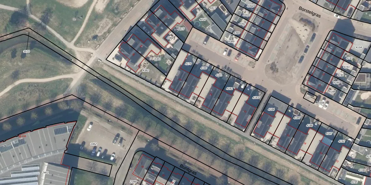 Het perceel waarop Borstelgras 27 staat heeft een oppervlakte van 241 m². Dit is een middelgroot perceel. De perceeloppervlakte wordt geregistreerd door het Kadaster. Gedetailleerde informatie over de maten van dit perceel kunt u vinden in het rapport Kadastrale kaart met maatvoering van Borstelgras 27.