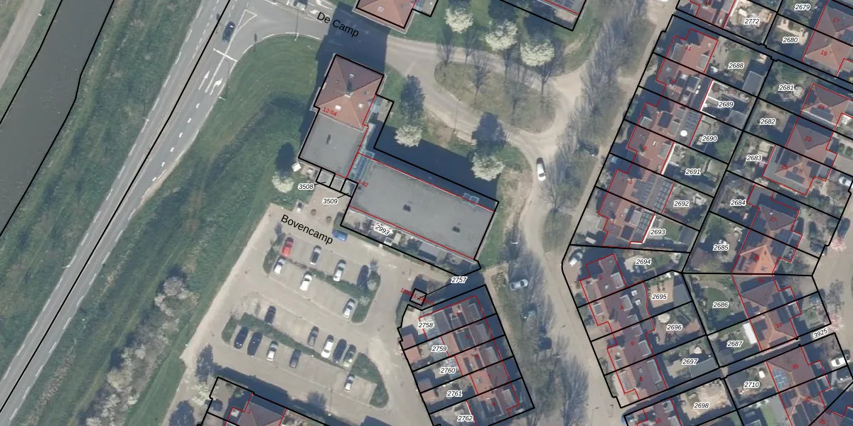 Het perceel waarop Bovencamp 20 staat heeft een oppervlakte van 1037 m². Dit is een zeer groot perceel. De perceeloppervlakte wordt geregistreerd door het Kadaster. Gedetailleerde informatie over de maten van dit perceel kunt u vinden in het rapport Kadastrale kaart met maatvoering van Bovencamp 20.