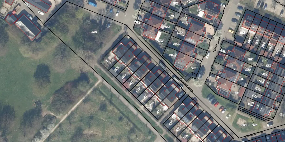 Bovencamp 43 is gelegen op kadastraal perceel HTN04E2588. Deze kadastrale aanduiding is uniek en wordt gebruikt door het Kadaster om eigendomsrechten en andere zakelijke rechten vast te leggen. Het perceel maakt onderdeel uit van de kadastrale gemeente Houten.