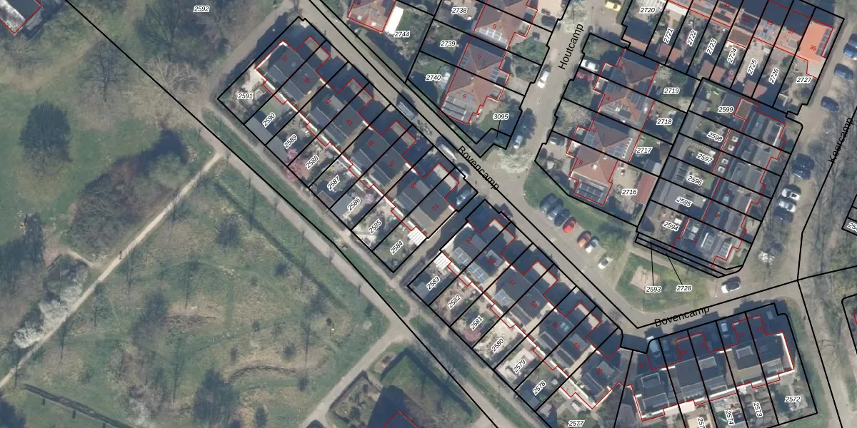 Het perceel waarop Bovencamp 51 staat heeft een oppervlakte van 202 m². Dit is een middelgroot perceel. De perceeloppervlakte wordt geregistreerd door het Kadaster. Gedetailleerde informatie over de maten van dit perceel kunt u vinden in het rapport Kadastrale kaart met maatvoering van Bovencamp 51.