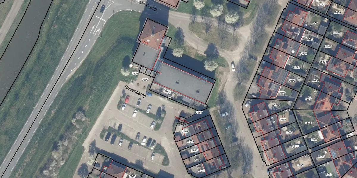 Het perceel waarop Bovencamp 8 staat heeft een oppervlakte van 1037 m². Dit is een zeer groot perceel. De perceeloppervlakte wordt geregistreerd door het Kadaster. Gedetailleerde informatie over de maten van dit perceel kunt u vinden in het rapport Kadastrale kaart met maatvoering van Bovencamp 8.