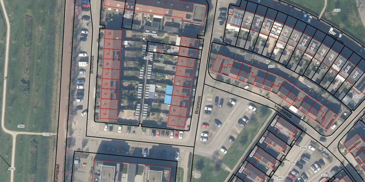 Het perceel waarop Bronmos 11 staat heeft een oppervlakte van 3921 m². Dit is een zeer groot perceel. De perceeloppervlakte wordt geregistreerd door het Kadaster. Gedetailleerde informatie over de maten van dit perceel kunt u vinden in het rapport Kadastrale kaart met maatvoering van Bronmos 11.