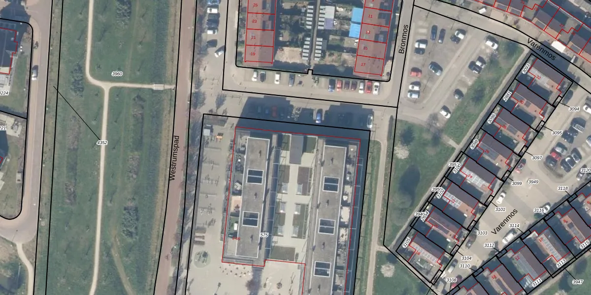 Het perceel waarop Bronmos 8 staat heeft een oppervlakte van 4585 m². Dit is een zeer groot perceel. De perceeloppervlakte wordt geregistreerd door het Kadaster. Gedetailleerde informatie over de maten van dit perceel kunt u vinden in het rapport Kadastrale kaart met maatvoering van Bronmos 8.