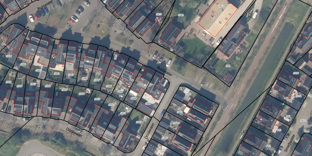 Het perceel waarop Buiswater 14 staat heeft een oppervlakte van 322 m². Dit is een groot perceel. De perceeloppervlakte wordt geregistreerd door het Kadaster. Gedetailleerde informatie over de maten van dit perceel kunt u vinden in het rapport Kadastrale kaart met maatvoering van Buiswater 14.
