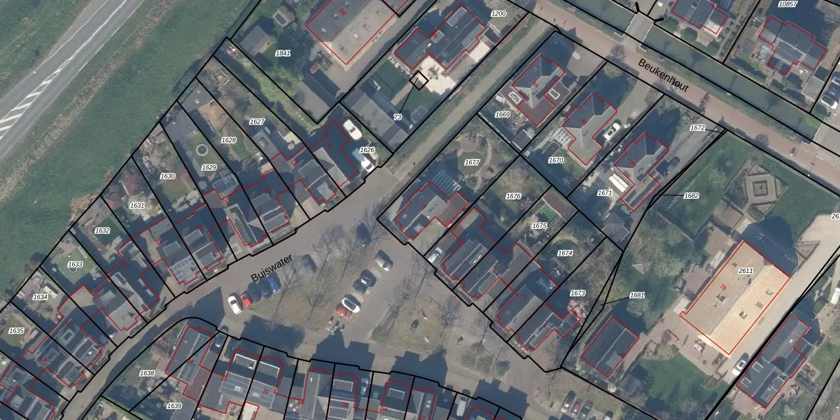 Het perceel waarop Buiswater 9 staat heeft een oppervlakte van 485 m². Dit is een groot perceel. De perceeloppervlakte wordt geregistreerd door het Kadaster. Gedetailleerde informatie over de maten van dit perceel kunt u vinden in het rapport Kadastrale kaart met maatvoering van Buiswater 9.