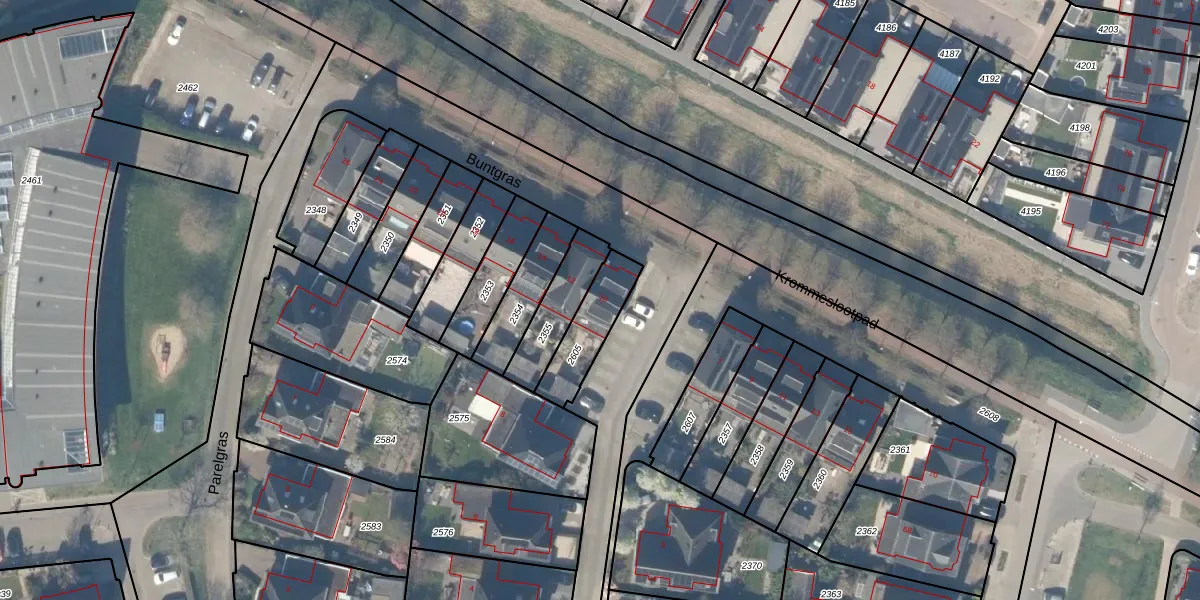Buntgras 10 is gelegen op kadastraal perceel HTN04B2605. Deze kadastrale aanduiding is uniek en wordt gebruikt door het Kadaster om eigendomsrechten en andere zakelijke rechten vast te leggen. Het perceel maakt onderdeel uit van de kadastrale gemeente Houten.