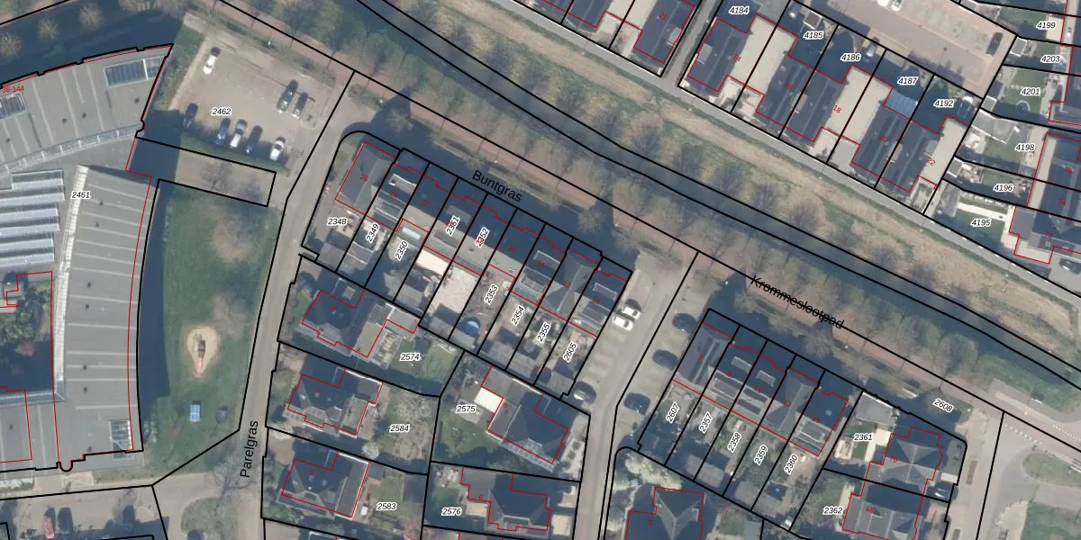Buntgras 14 is gelegen op kadastraal perceel HTN04B2354. Deze kadastrale aanduiding is uniek en wordt gebruikt door het Kadaster om eigendomsrechten en andere zakelijke rechten vast te leggen. Het perceel maakt onderdeel uit van de kadastrale gemeente Houten.