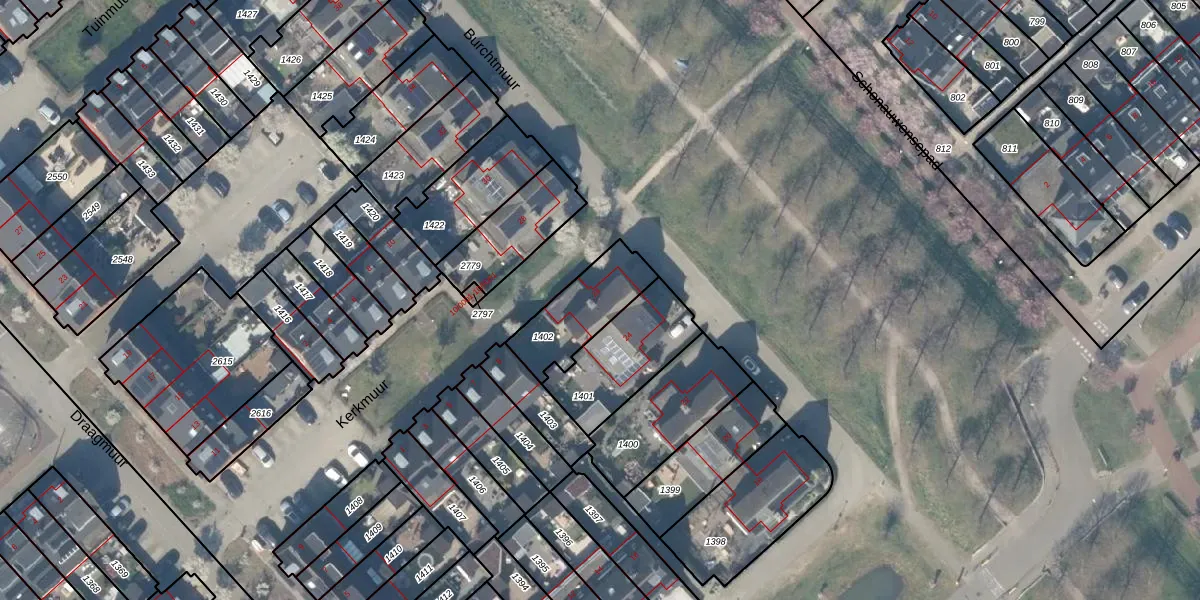 Gebruik de zoekbalk of klik op een perceel voor informatie over de adressen binnen dit perceel.
