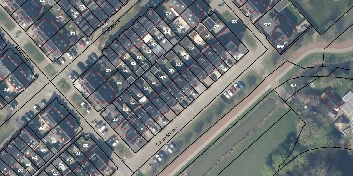 Het perceel waarop Cascademuur 32 staat heeft een oppervlakte van 176 m². Dit is een middelgroot perceel. De perceeloppervlakte wordt geregistreerd door het Kadaster. Gedetailleerde informatie over de maten van dit perceel kunt u vinden in het rapport Kadastrale kaart met maatvoering van Cascademuur 32.