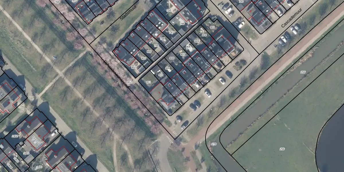 Het perceel waarop Cascademuur 4 staat heeft een oppervlakte van 158 m². Dit is een middelgroot perceel. De perceeloppervlakte wordt geregistreerd door het Kadaster. Gedetailleerde informatie over de maten van dit perceel kunt u vinden in het rapport Kadastrale kaart met maatvoering van Cascademuur 4.