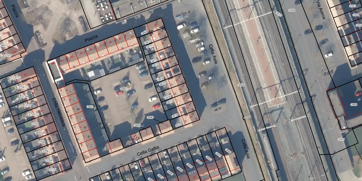 Het perceel waarop Cella Asia 16 staat heeft een oppervlakte van 90 m². Dit is een klein perceel. De perceeloppervlakte wordt geregistreerd door het Kadaster. Gedetailleerde informatie over de maten van dit perceel kunt u vinden in het rapport Kadastrale kaart met maatvoering van Cella Asia 16.