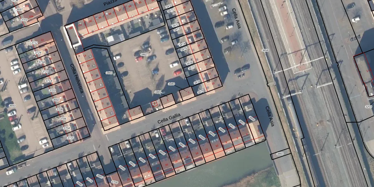 Cella Gallia 1 is gelegen op kadastraal perceel HTN04B3480. Deze kadastrale aanduiding is uniek en wordt gebruikt door het Kadaster om eigendomsrechten en andere zakelijke rechten vast te leggen. Het perceel maakt onderdeel uit van de kadastrale gemeente Houten.