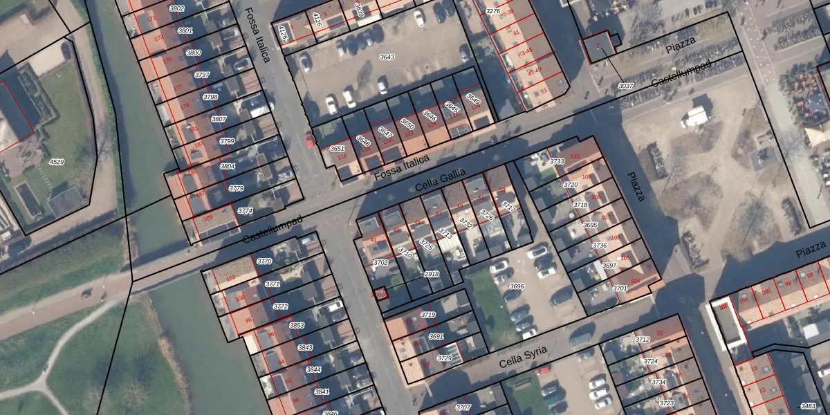 Cella Gallia 45 is gelegen op kadastraal perceel HTN04B3725. Deze kadastrale aanduiding is uniek en wordt gebruikt door het Kadaster om eigendomsrechten en andere zakelijke rechten vast te leggen. Het perceel maakt onderdeel uit van de kadastrale gemeente Houten.