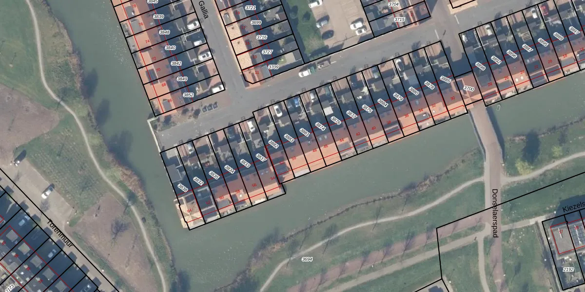 Gebruik de zoekbalk of klik op een perceel voor informatie over de adressen binnen dit perceel.