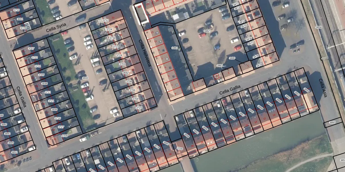 Cella Helvetica 1 is gelegen op kadastraal perceel HTN04B3483. Deze kadastrale aanduiding is uniek en wordt gebruikt door het Kadaster om eigendomsrechten en andere zakelijke rechten vast te leggen. Het perceel maakt onderdeel uit van de kadastrale gemeente Houten.