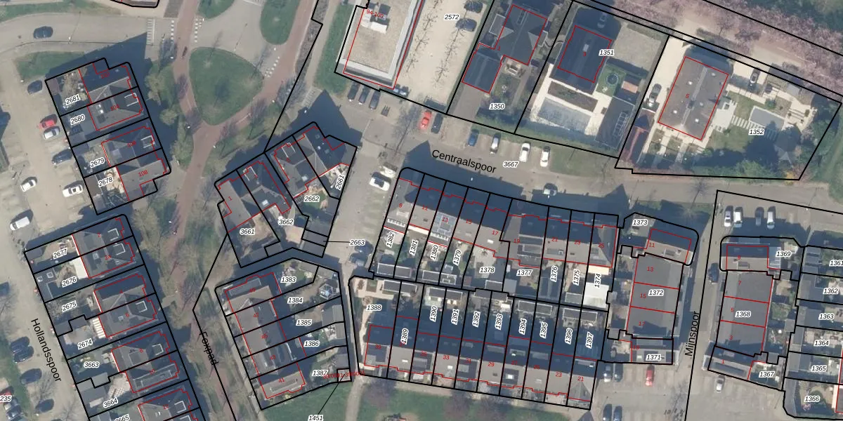 Centraalspoor 11 is gelegen op kadastraal perceel HTN04B1381. Deze kadastrale aanduiding is uniek en wordt gebruikt door het Kadaster om eigendomsrechten en andere zakelijke rechten vast te leggen. Het perceel maakt onderdeel uit van de kadastrale gemeente Houten.