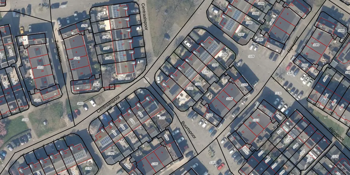 Centraalspoor 28 is gelegen op kadastraal perceel HTN04B1103. Deze kadastrale aanduiding is uniek en wordt gebruikt door het Kadaster om eigendomsrechten en andere zakelijke rechten vast te leggen. Het perceel maakt onderdeel uit van de kadastrale gemeente Houten.