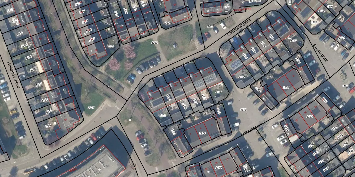 Gebruik de zoekbalk of klik op een perceel voor informatie over de adressen binnen dit perceel.