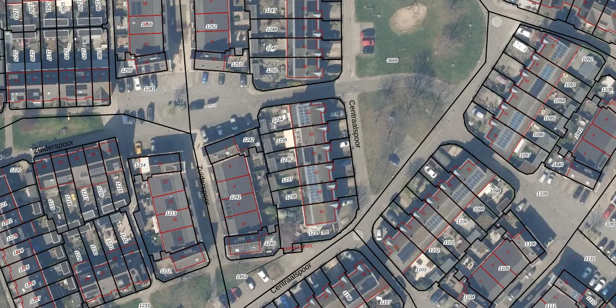 Centraalspoor 55 is gelegen op kadastraal perceel HTN04B1236. Deze kadastrale aanduiding is uniek en wordt gebruikt door het Kadaster om eigendomsrechten en andere zakelijke rechten vast te leggen. Het perceel maakt onderdeel uit van de kadastrale gemeente Houten.